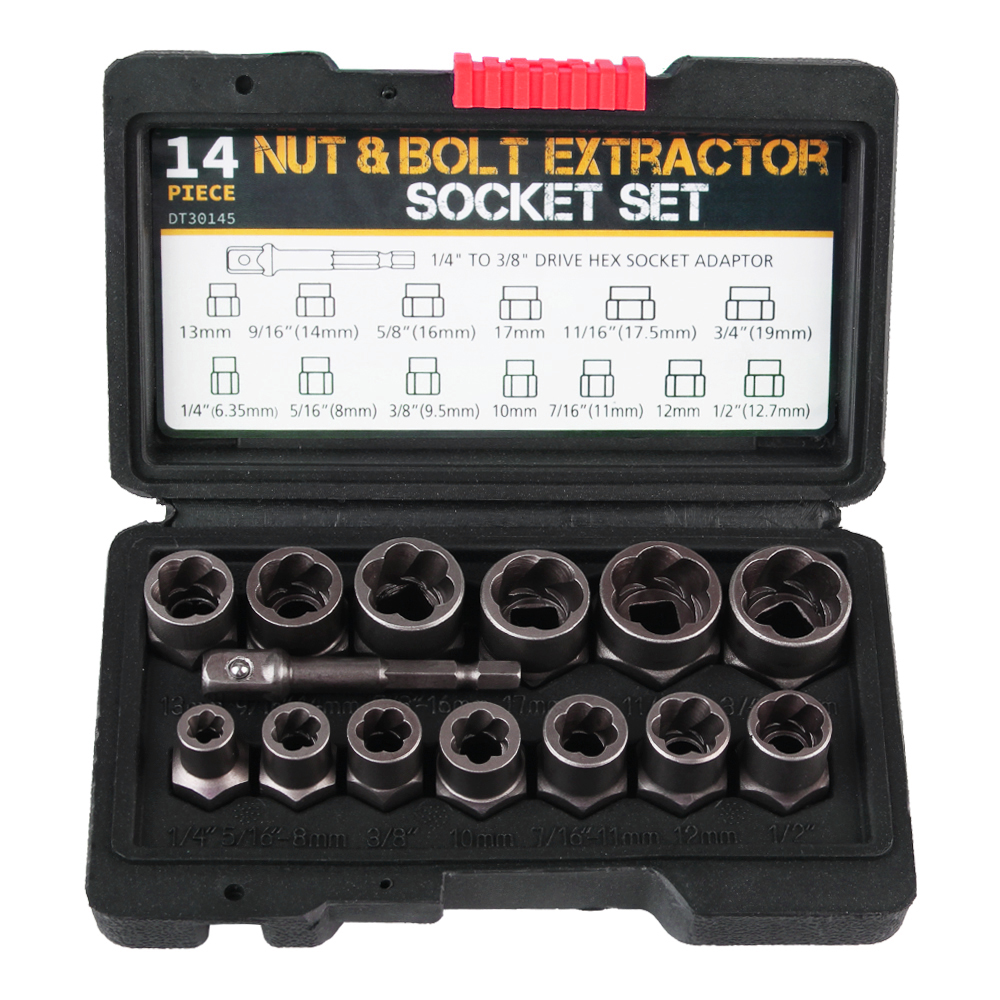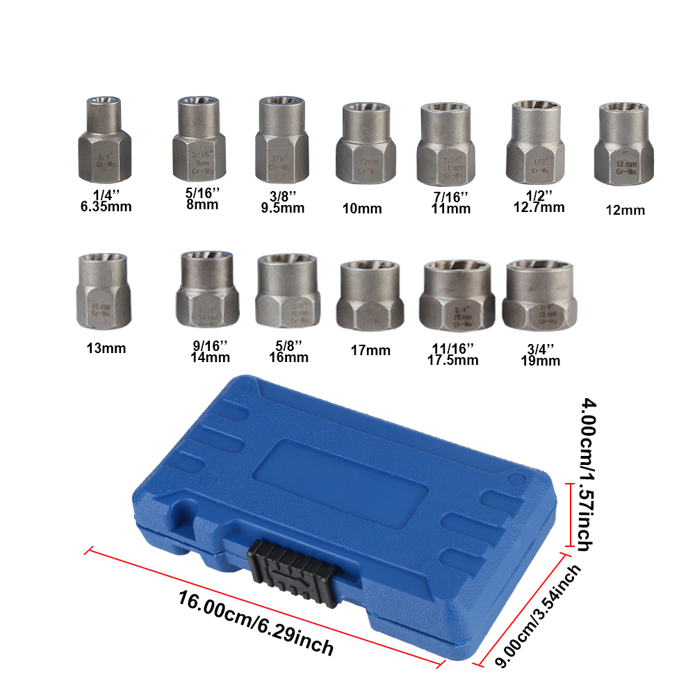Damaged Screw Extractor Hand Tools 14Pcs Bolt Nut Remover Socket Set Cr-Mo Steel Car Tool Kit 6.35Mm-19Mm