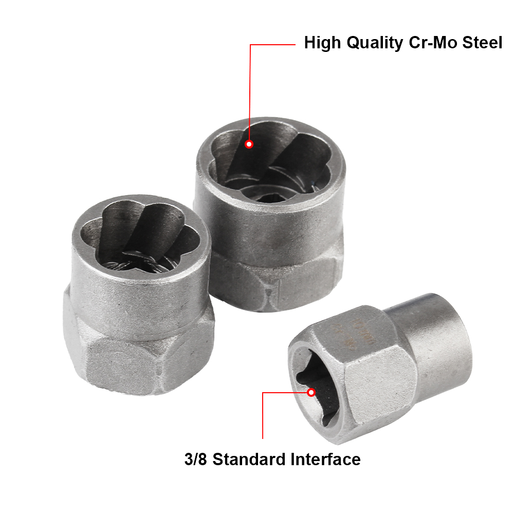 Standard 3/8-inch drive and 1/4-inch hex drive to 3/8-inch drive adapter to let the extractors compatible with common or heavy-duty power tools, drivers and screwdrivers handle tools.